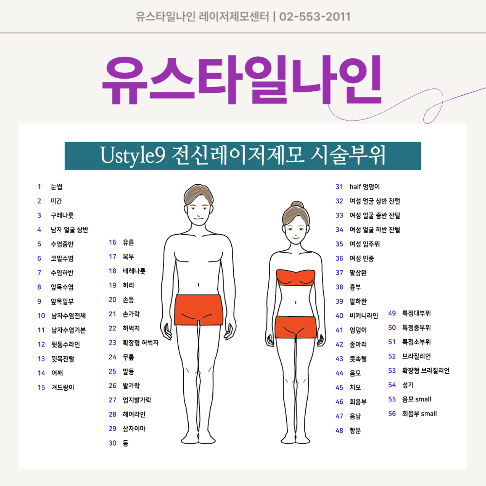 수염/브라질리언/헤어라인/팔/다리 등 전신 56개부위 레이저제모, 강남역 11번출구에서 10m