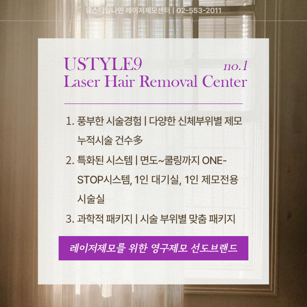 아무리해도 계속해서 살아나는 지긋지긋한 인중털! 여자 인중레이저제모로 편하게 관리하고 깔끔한 이미지를 만들어보실 때 입니다. 안정감있는 제모는 물론 피부를 맑게 만들어줄수있는 효과까지 기대할 수 있는 인중레이저제모를 전문적으로 시술하는 곳, 강남역11번출구 바로앞 유스타일나인에서 시작해보시기 바랍니다.